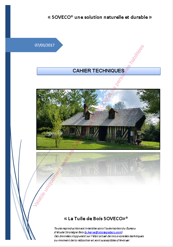 Le Cahier Technique décrivant le procédé SOVECO® a pour but de définir les conditions d’exécution des travaux de couverture bardeau les plus courants. Il a été élaboré grâce à l’expérience acquise sur les chantiers réalisés sous contrôle Socotec, Véritas ou Dides.